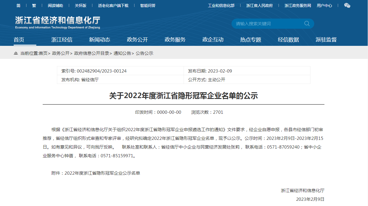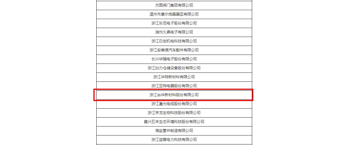 2月9日,浙江省經(jīng)濟和信息化廳發(fā)布的《關(guān)于2022年度浙江省隱形冠軍企業(yè)名單的公示》中,浙江臺華新材料股份有限公司上榜。