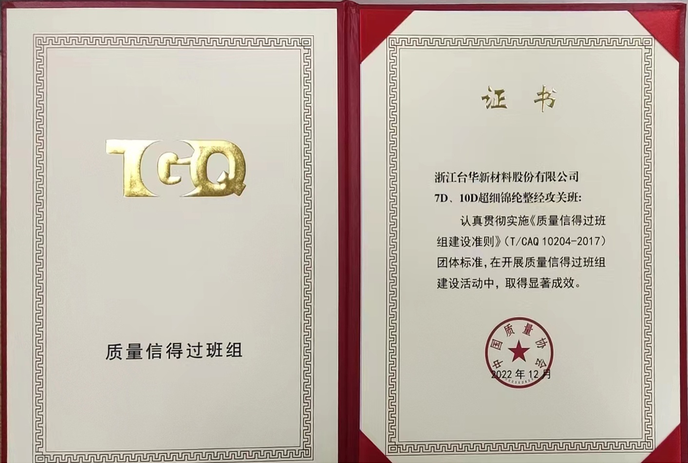 2022年度全國(guó)質(zhì)量信得過(guò)班組評(píng)比結(jié)果揭曉,臺(tái)華新材“7D、10D超細(xì)錦綸整經(jīng)攻關(guān)班”獲“質(zhì)量信得過(guò)班組”稱號(hào)。