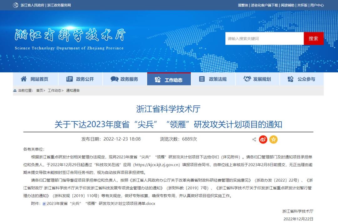 “尖兵”“領雁”研發攻關計劃由省級財政資金設立,圍繞建設“互聯網+”、生命健康和新材料三大科創高地和搶占“碳達峰、碳中和”技術制高點,聚焦十大標志性產業鏈、未來產業等重點領域,兼顧社會公益等重大技術需求,在全省范圍內公開征集榜單。入選省級“尖兵”“領雁”計劃,彰顯了我司的科研攻關、科技創新綜合實力。