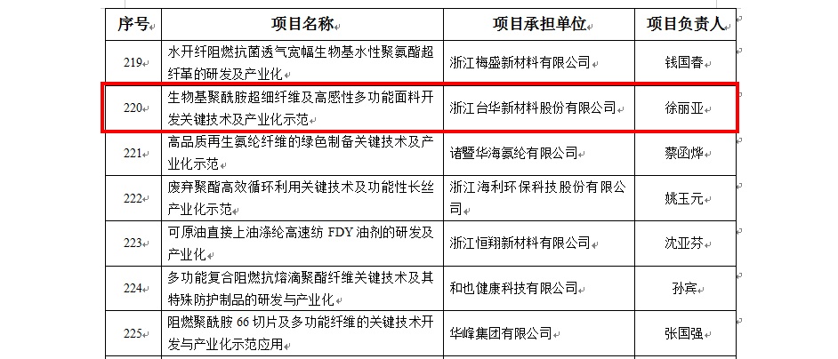 近日,2023年度省“尖兵”“領雁”研發攻關計劃項目資金下發,臺華新材預計獲省科技專項資金補助128萬元。據悉,臺華新材攻關“生物基聚酰胺超細纖維及高感性多功能面料開發關鍵技術及產業化示范項目” 入選省級“領雁”計劃。