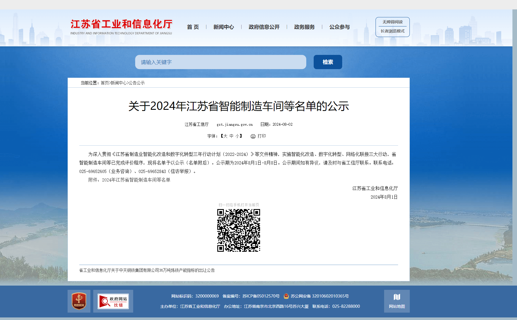8月1日,江蘇省工業和信息化廳發布了《關于2024年江蘇省智能制造車間等名單的公示》,嘉華特種尼龍(江蘇)有限公司成功入選該名單。