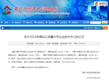查看詳情子公司嘉華尼龍企業技術中心被認定為2023年度嘉興市企業技術中心